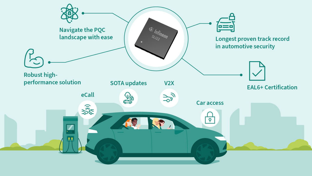 Infineon’s TEGRION™ SLI22 automotive security controller is a robust, high performance, PQC ready security platform and can be deployed across a wide range of security-critical applications, including eSIM, V2X, and car access.